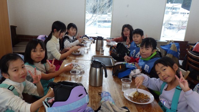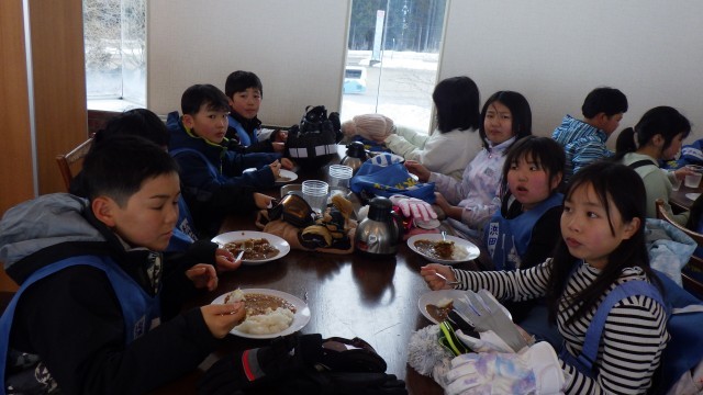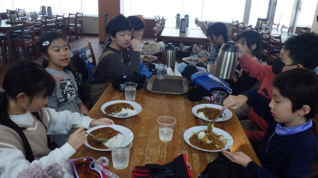 お昼ご飯の様子です。おいしくカレーライスをいただきました。
