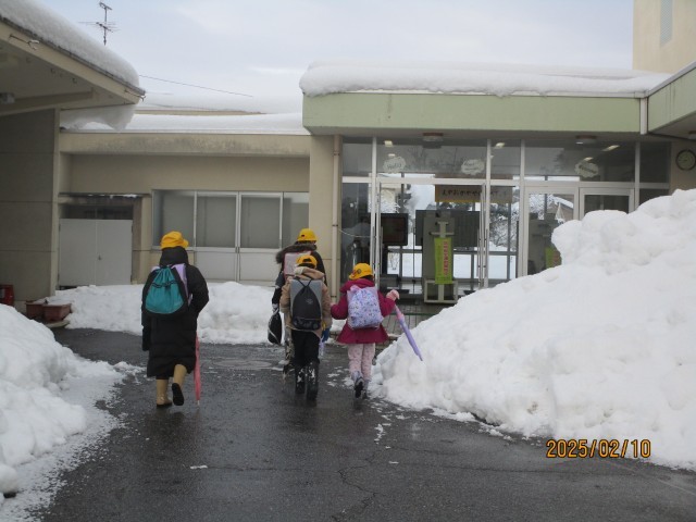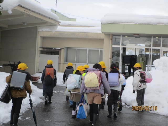 今朝は、雪も止んでいます。先週は、車で送ってもらう子供たちが多かったのですが、今日は、集団登校で、元気に登校してきました。
