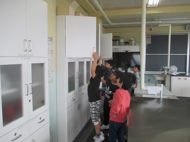 生活科「がっこうたんけん」を始めました。理科室では、いろいろな道具を見付けました。