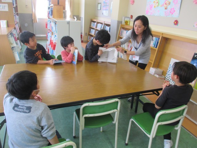 図書室の使い方について、教えていただきました。本の借り方や、選び方を学びました。2年生は、1年生におすすめの本を紹介しました。