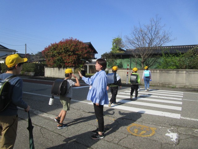 見守り隊の皆さん、見守りをしていただき、ありがとうございます。校門では、見送る教員に、ハイタッチをして帰る子供も見られました。