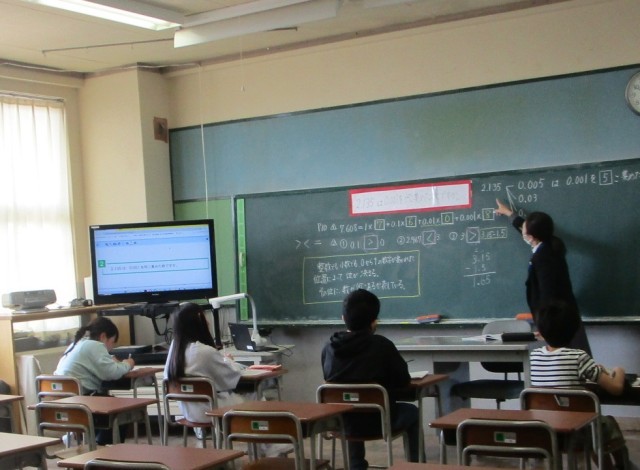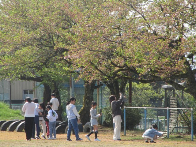 4年生は、理科の学習で、グラウンドで春を見付けてクロームブックで撮影しています。5年生は、算数の学習で、問題に真剣に取り組んでいます。