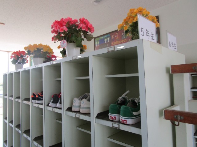 子供たちの登校後、下足箱を見ると、きれいに入れてあります。さすが高学年、お手本です。