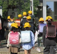 4年生は、国語科の学習中です。元気よく挙手しています。1年生は、算数科の問題を集中して考えています。