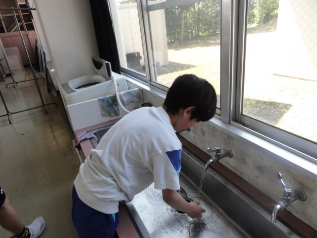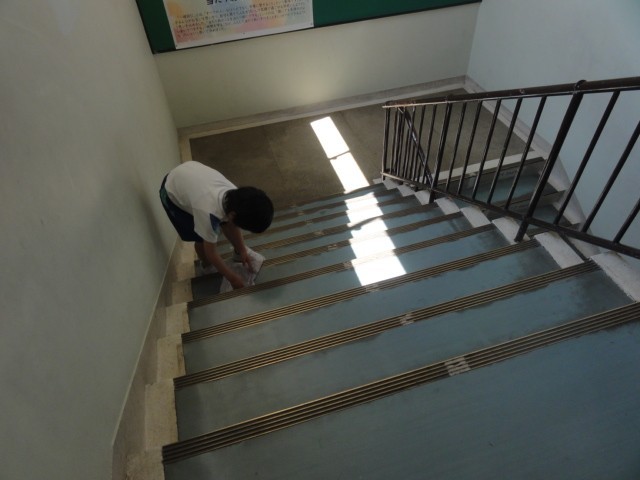縦割り班による、縦割り清掃が始まりました。子供たちは、黙々と清掃に取り組み、一生懸命自分の役割を果たしていました。