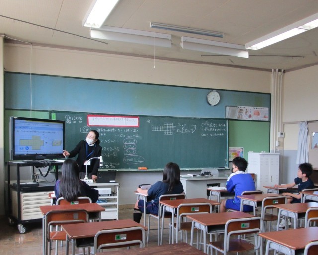 高学年は、算数の学習中です。6年生は、正多角形について調べて決まりを見付けています。5年生は、色いろいろな形の体積を求めています。