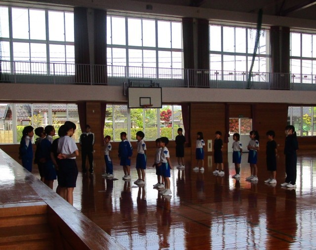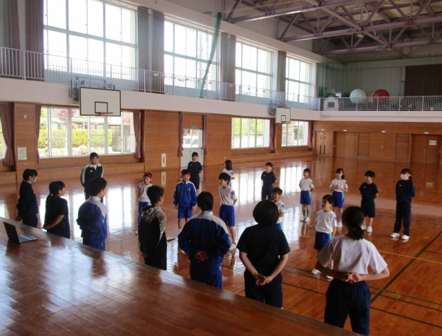 赤団は、給食時間に6年生が放送を掛け、昼休みにみんなが集合して応援練習をしていました。