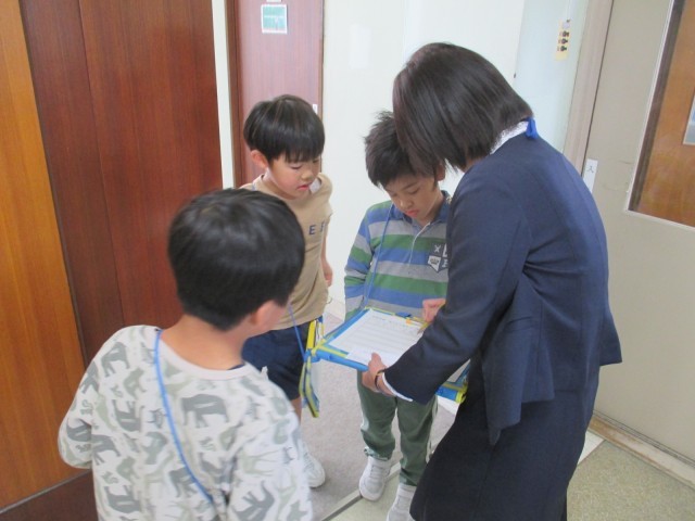 1年生は、全校の職員の方に、名刺を配り、あいさつをしました。緊張しながらも、「よろしくお願いします」と、しっかり言うことができました。