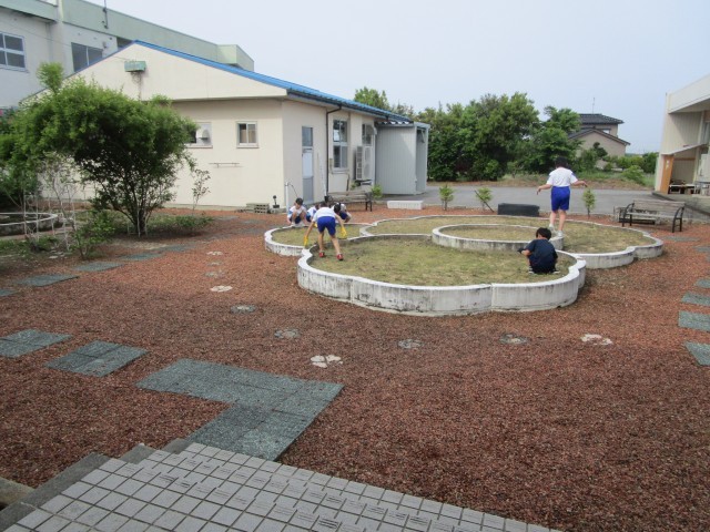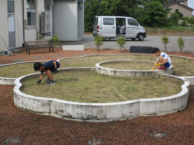 登校後、軍手をはめてMTガーデンに出て行く子供たちがいました。進んできれいにしようと4年生が草むしりをしてくれています。ありがとう。