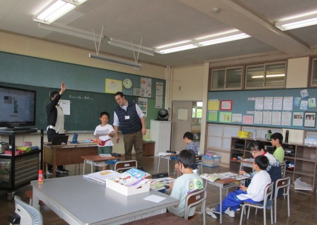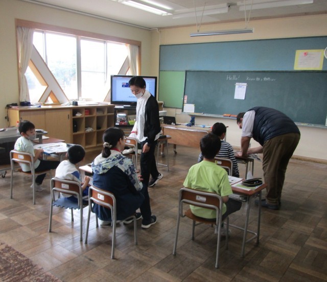 3年生は、ALTの先生と外国語活動の学習をしています。楽しそうな英語の歌が聞こえてきます。