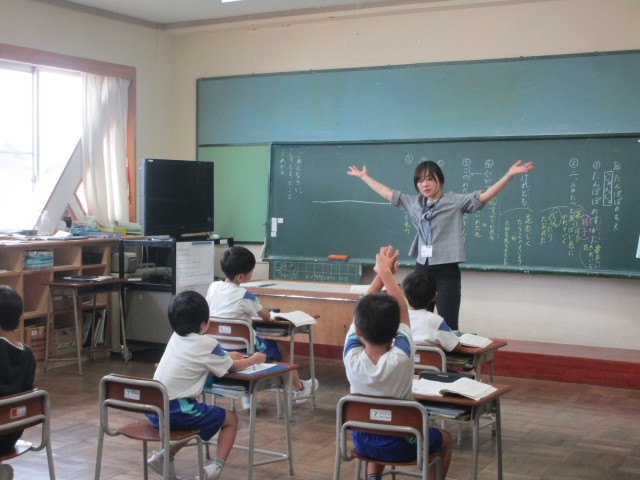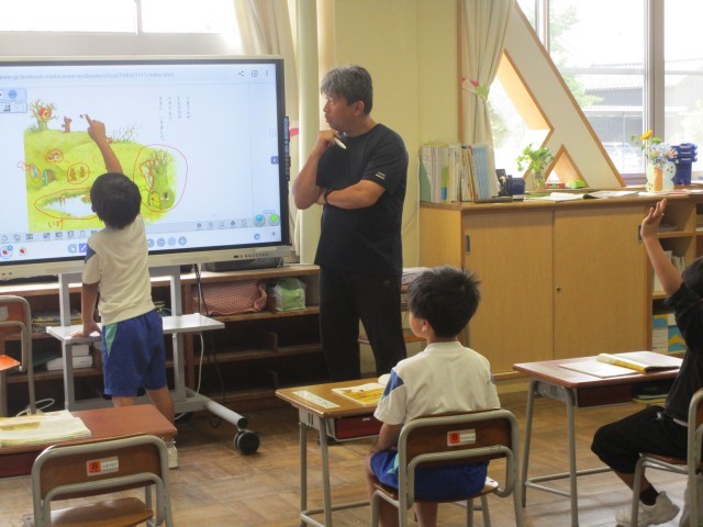 国語科の学習中です。1年生は「はなのみち」、2年生は「たんぽぽのちえ」の教材文や挿絵をもとに、考えを出し合っています。