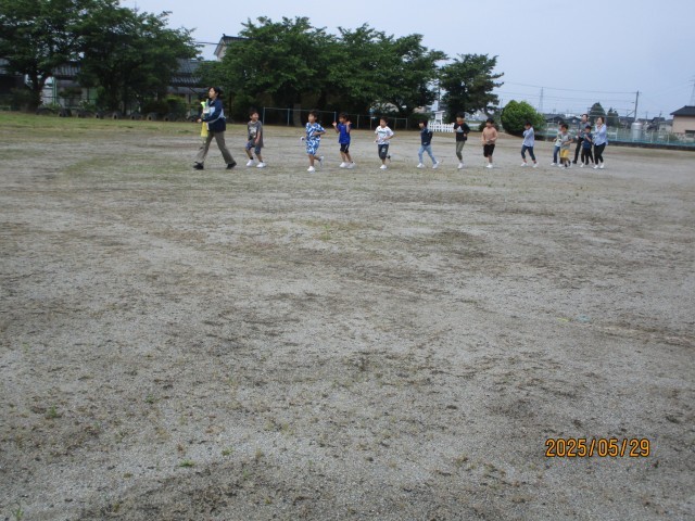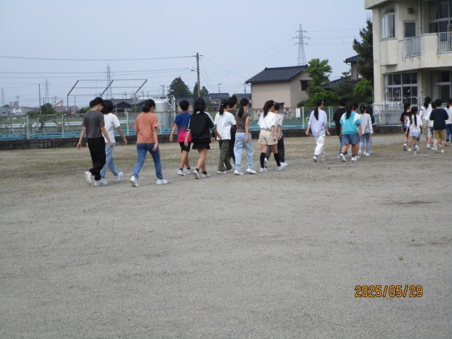 火事を想定した避難訓練を行いました。しゃべらず落ち着いてグラウンドに避難することができました。