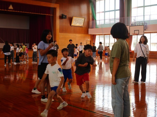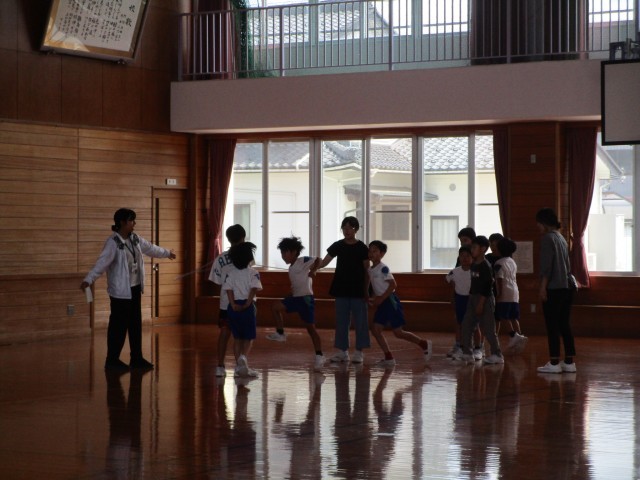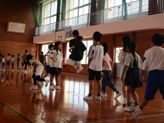 3分間走の後は、団ごとに大縄跳びです。閉校記念なわとび発表会に向けて、練習を始めました。