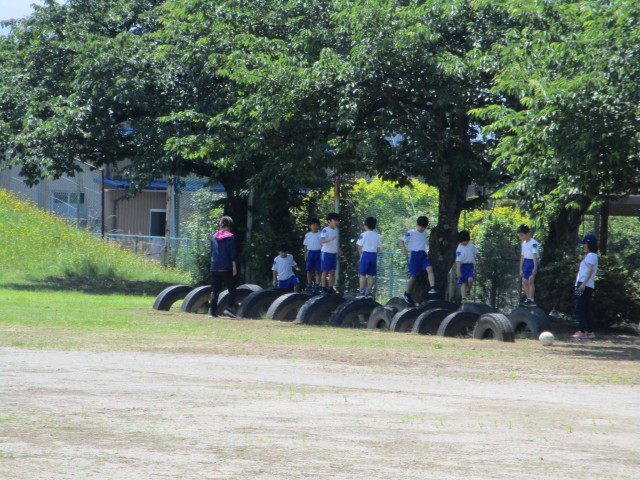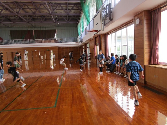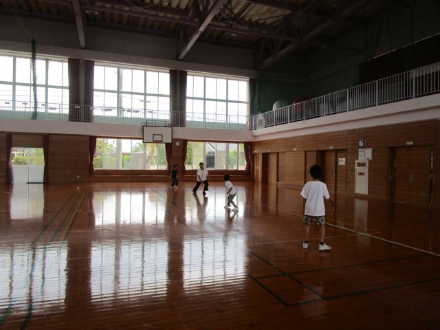 体育館やグラウンドでは、子供たちが元気いっぱいに遊んでいます。笑顔もたくさん見られます。