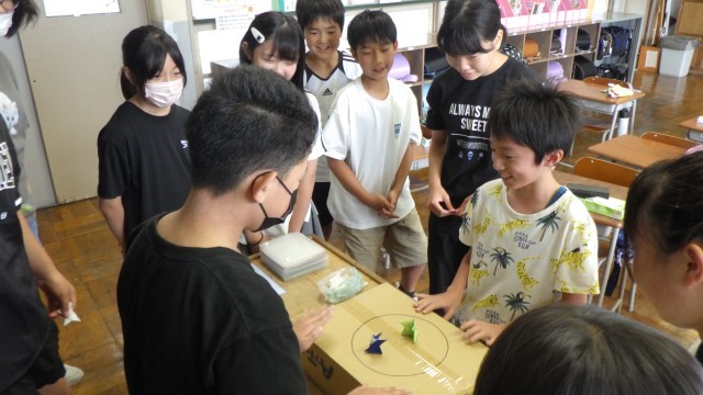 今日は「とんとん相撲大会」をしました。プロジェクトを企画したKさん指導のもと、折り紙でお相撲さんを作るところから始めました。白熱した戦いが繰り広げられました。