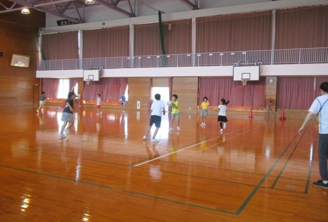 体育館では、1年生から6年生がドッジボールや鬼ごっこで思い切り体を動かしています。