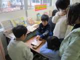 登校した子供たちは、MTっ子ライブラリー前で、オセロや将棋を楽しんでいました。
