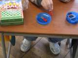 図画工作科「にょきにょきとびだせ」では、長いビニールがにょきにょき飛び出す仕組...