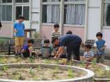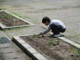全校のみんなで、MTガーデンに花の苗を植えました。縦割り班ごとに場所を分担し、...