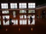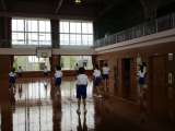 1年生から3年生が、体育館で遊んでいました。途中放送が入ると、床に腰を下ろし静か...