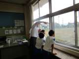 休み時間にグラウンドで鳥を見付けた子供たちは、みんなで職員室に知らせに来ました。...