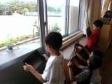 「また見えた!!」「オレンジ色に見えたよ!!」と雷に夢中な子供たち。雷が見える...