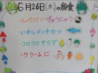 給食準備中です。さすがは上学年です。手際よく盛りつけ、配膳を進めています。