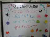 今日の給食です。 今日の献立掲示の周りに貼ってある食品やアサガオは、折り紙で作っ...