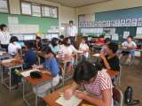 1・2年生、3年生教室では、応募作品等の宿題を見せ合ったり、提出したりしていまし...