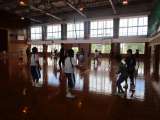 たくさんの子供たちが体育館に集まってきました。ビーチボール、ドッジボール、肋木等...