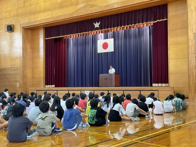 まだまだ暑い日が続きますが、第2学期始業式が行われました。校長先生からは、暑い中でも睡眠や食事・水分補給などをしっかりとり、生活リズムを少しずつ整えていけるようにしてほしいとの話がありました。登下校時も熱中症にならないように、各ご家庭で安全帽子や水筒の準備をお願いします。