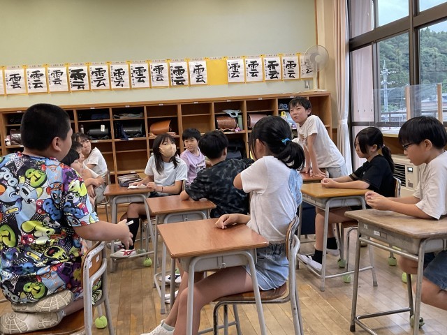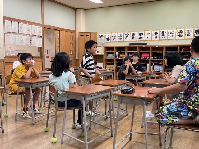 一人一人が夏休みを振り返って話をしました。県外へ旅行に行って体験したことや友達とプールに行ったこと、初めて挑戦してみたことなど、話を聞いていると楽しかったことが伝わってきました。