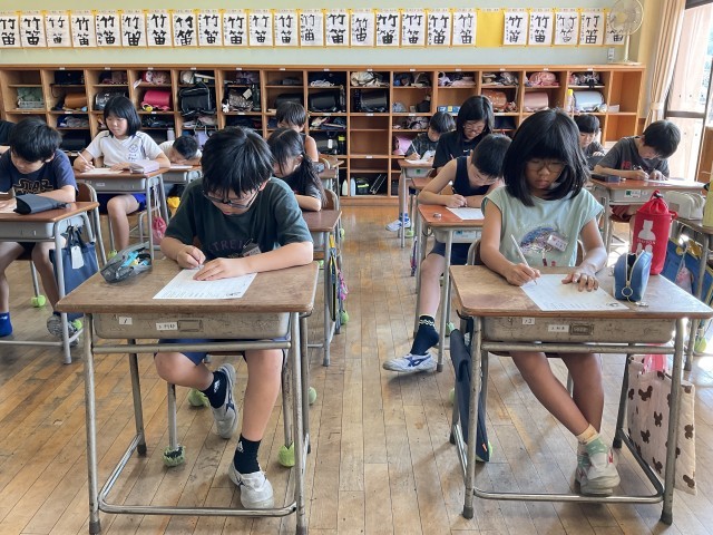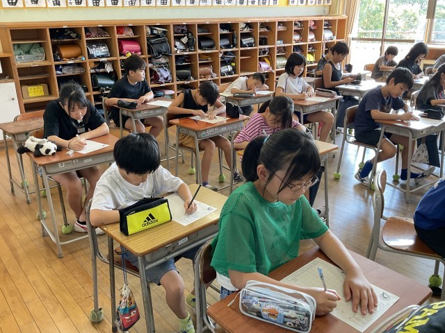 今日の読み聞かせタイムに「おおきな おおきな 木みたいに」を聞き、言葉遣いについて考えました。子供たちは、「やさしい言葉を使うことで、友達と仲よくなれたり、みんなが幸せになれたりする」「チクチク言葉を言うと、自分も相手も嫌な気持ちになってしまう」など、自分の生活を振り返りながら考えを書いていました。