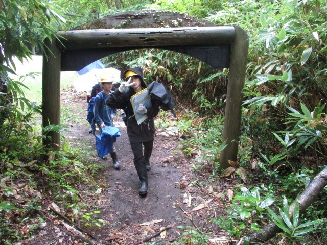 午後は、雨が少し小降りになってきてから、野外活動を行いました。トントンの森を歩きながら、立山の豊かな自然を満喫しました。