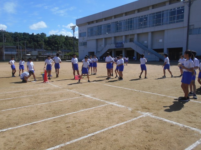 9月もいよいよ今日で最後となります。気持ちよい秋晴れだったので、9月の50m走の記録を測定しました。前よりもタイムが早くなったと喜んでいる子供が多かったです。50m走の後には、ソフトボール投げを行いました。ファールにならないように、助走をつけて投げるのが難しそうでした。まだまだ記録を伸ばせるように練習を継続していきます。