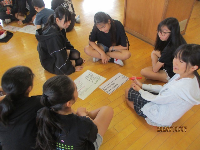 「小さなことからはじめよう」を合言葉に、各委員会の取組に対する全校児童の振り返りの結果が発表されました。みんなの意識が、1学期より下がっている委員会もあれば、上がっている委員会もありました。今回の結果を受けて、今後の活動について見直し、今よりも成果を出せるように真剣に考えていました。