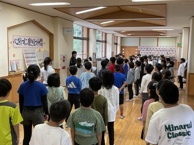 朝、学年で集まって声出しをしたり手話や動きの確認をしたりしてから、校内発表会に臨みました。