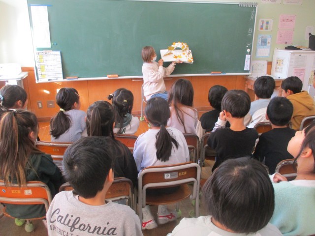 今朝は、六葉会の方による読み聞かせがありました。ハロウィンにちなんで、お化けが出てくる本を読んでくださいました。みんな興味津々で聞いていました。