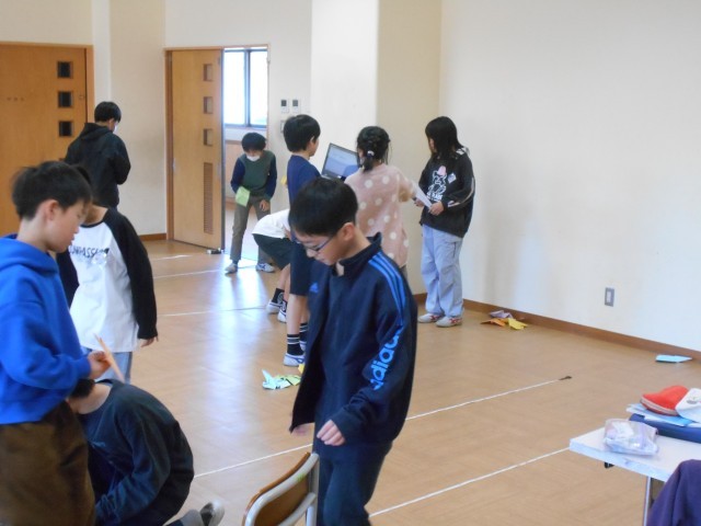 これまで学習した「平均」を生かして、種類の違う6つの紙飛行機が飛ぶ距離の予想を立てました。子供たちは、何度も紙飛行機を飛ばしてデータを集め、平均を求めて順位を予想しました。グループの仲間と協力しながら、楽しく学習することができました。