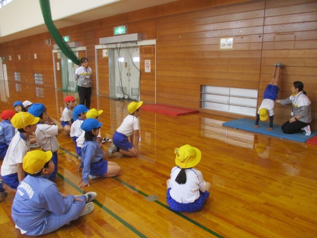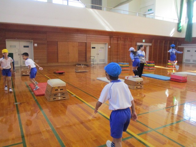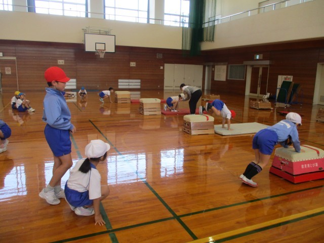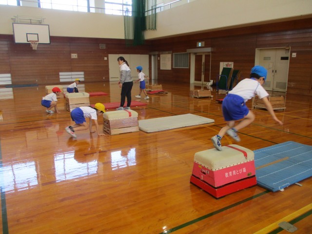 今日の体育では、スポーツ指導員の方に、跳び箱の指導をしていただきました。跳び箱が苦手だと言っていた子供たちも、楽しそうに活動に取り組み、授業の終わりには、「3段跳べたよ!」と笑顔で話していました。