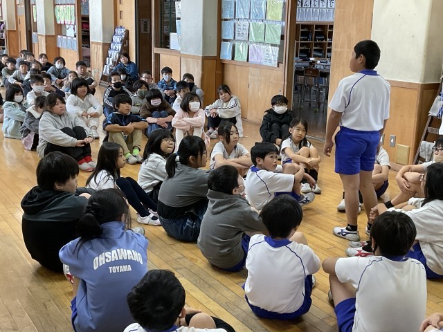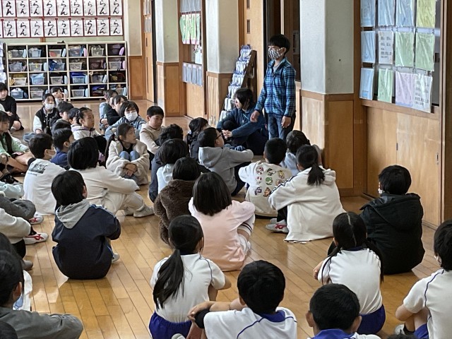 避難訓練の後に学年で集まり、「火事を起こさないために自分ができること」や、避難訓練での自分の姿について考えを伝え合いました。