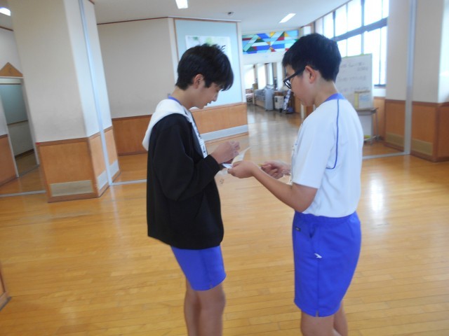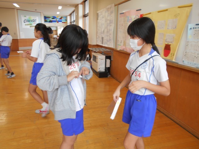 校内チャレンジ陸上大会の後、交流タイムの時間をもちました。大会が予定どおりに行われていた場合は、市内の6年生とシールを交換する予定でしたが、今日は学年のみんなとシールを交換しました。どのシールも色や絵にこだわりがあって、もらって嬉しい気持ちになりました。欠席して参加できなかった仲間もいるので、今後も交換の続きを行う予定です。
