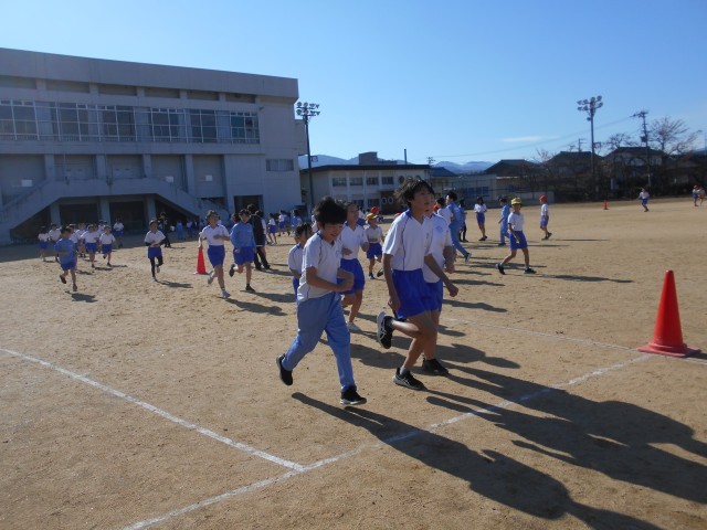 今日は天気もよく、予定通りマラソン大会が行われました。上学年は、4年生から順に学年ごとにスタートし、最後に6年生が走りました。去年よりもよい記録が出るように、みんな真剣に取り組んでいました。