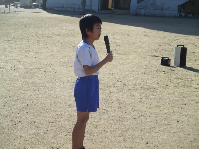 校内マラソン大会を行いました。はじめの言葉では、下学年のリーダーとして、1、2年生を励ます姿が見られました。