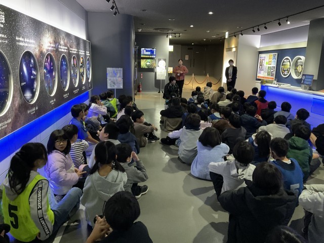 施設の外で方角を確かめてから、いざプラネタリウムへ。月や星の位置や動き、名前の由来などについて、楽しく学習することができました。