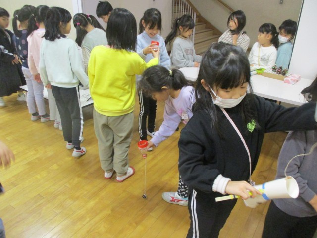 松ぼっくりの釣りや、おみくじ、けん玉など、遊び方を聞きながら、1年生との交流を楽しみました。1年生のみなさん、ありがとうございました!