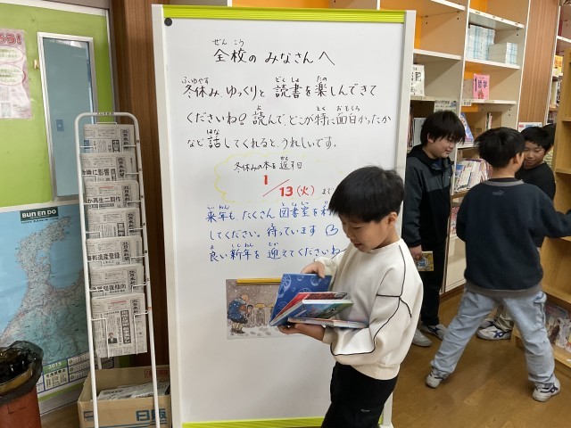 冬休みに読む本の貸出をしていただきました。子供たちは、「読みたかった本があった!」と嬉しそうに選んでいました。どんな本を借りたのか、お子さんに聞いてみてください。