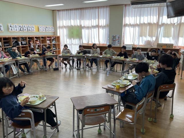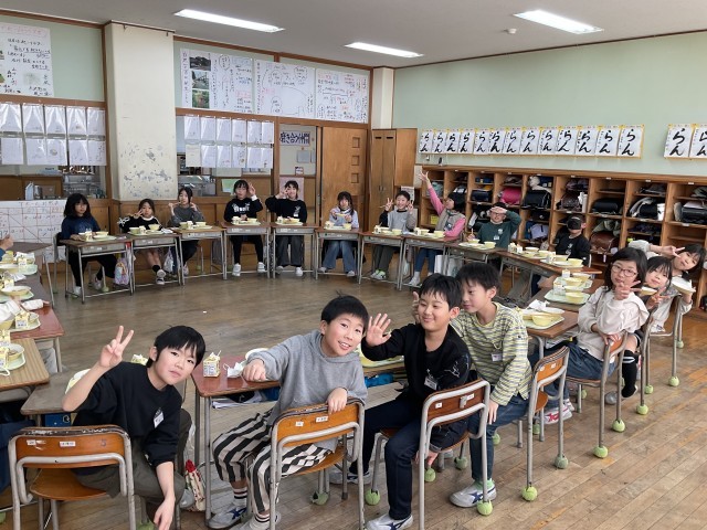 「おいしい給食をありがとうございます!」と感謝の気持ちを込めて、食べ終えた後の食器に残食が残らないように心がけてきた子供たち。2学期最後の給食も、みんなで残さずおいしく食べています。