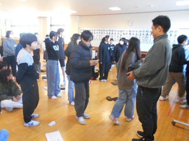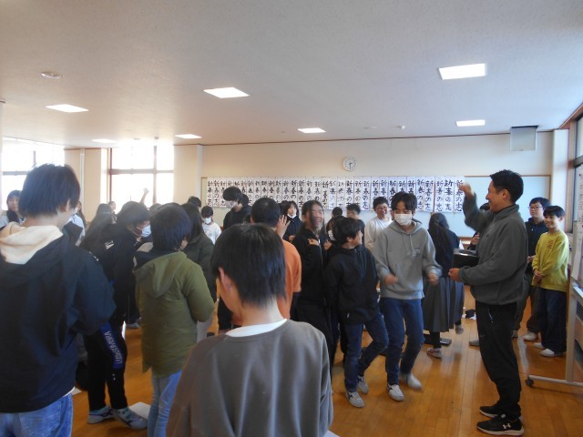 歌の練習の後は、楽しみにしていたくじ引きタイム。ほしいくじを願いながら運試しをしました。大吉は、学年の3人の先生のメッセージが書かれた特大年賀状。もらえた人は、ランドセルに入りきらない大きな年賀状を大切に抱えて持ち帰りました。