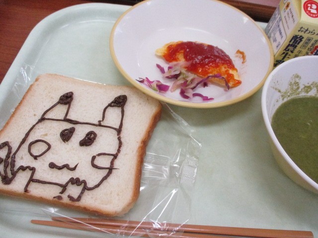 そして、チョコペンで食パンに思い思いの絵を描いて、食事を楽しみました。
